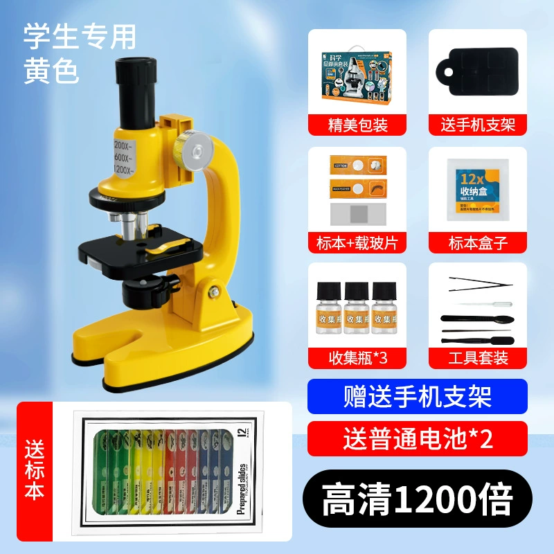 Children's microscope toys for primary and secondary school students to learn Yuma 1200 times high-definition science experiment set gift for boys and girls