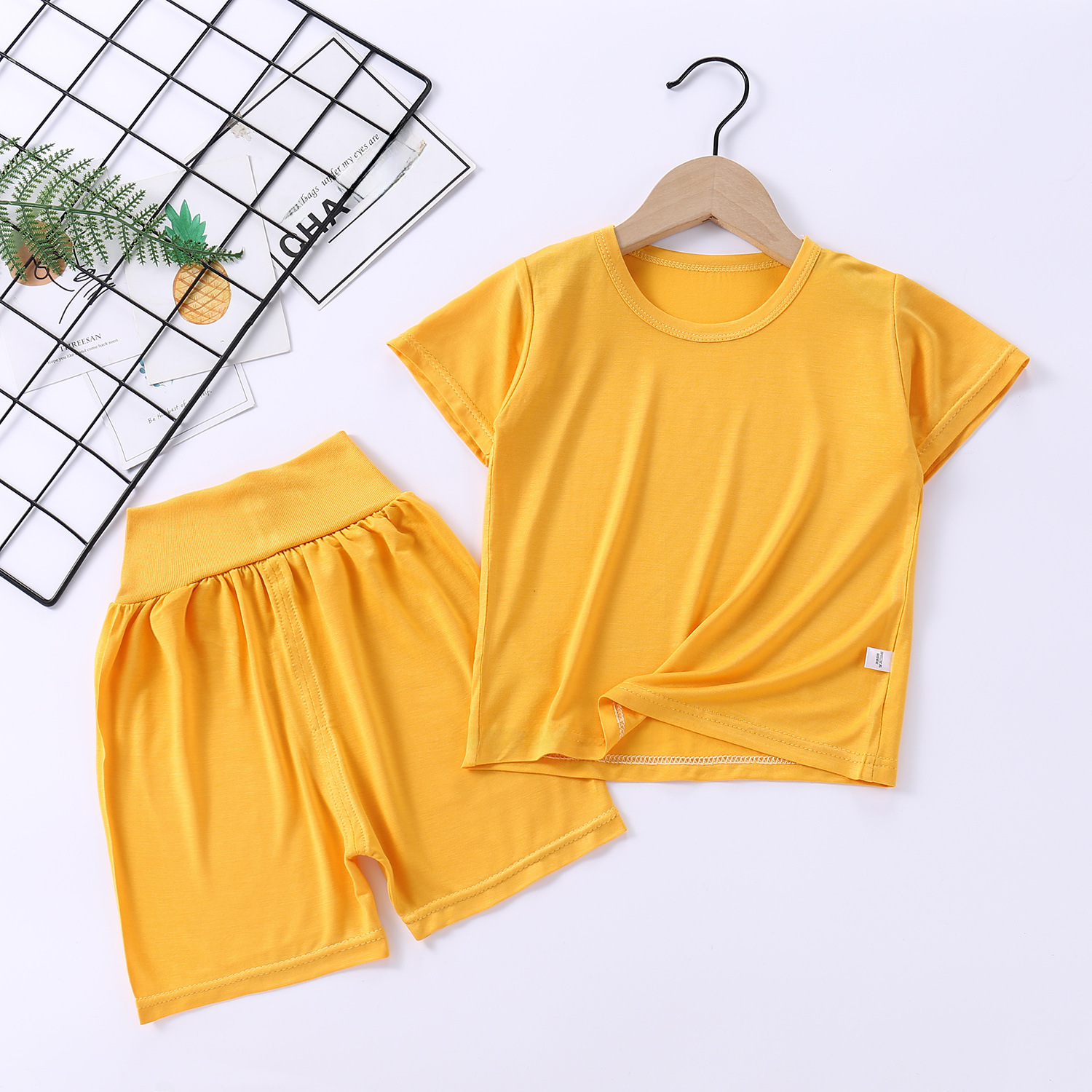 | nameOriginal | Children's Modal Short-sleeved Set Boys and Girls Summer New Pajamas Mask T Children's Wear High Waist Belly Protection Home Clothes |