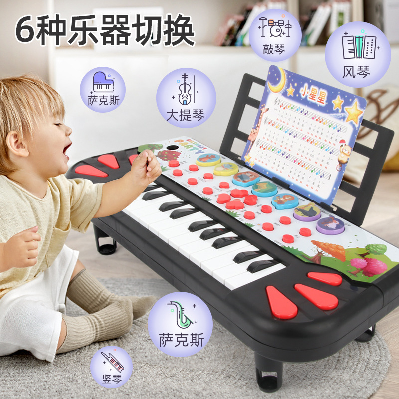 Children's multi-functional 25-key forest-themed electronic piano baby can play music educational early education piano toy