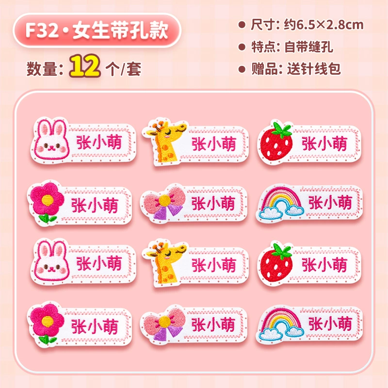 Children's name stickers embroidery kindergarten quilt name stickers preparation for kindergarten supplies entrance clothing brand can be sewn