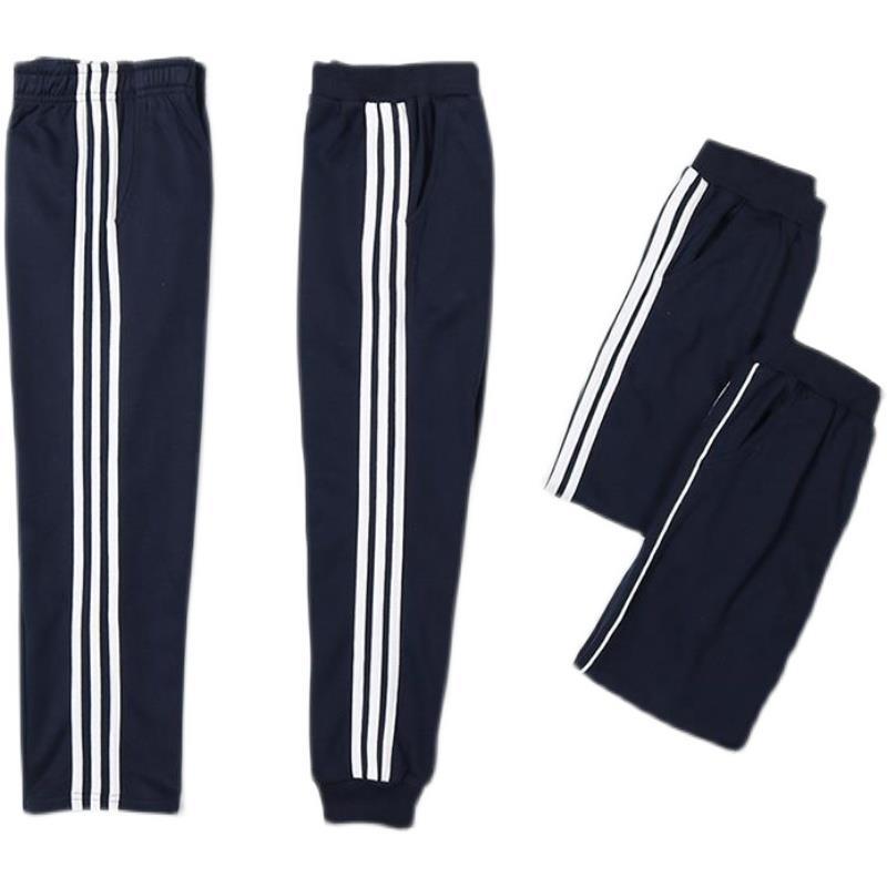 Children's navy blue school uniform pants for primary school students one or three two bars dark blue summer thin sports pants for boys and girls