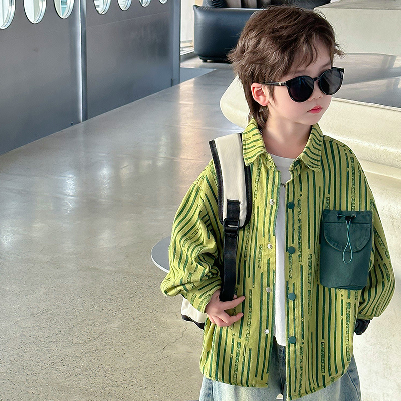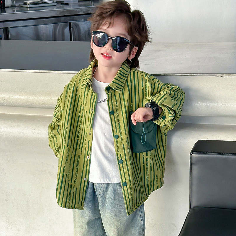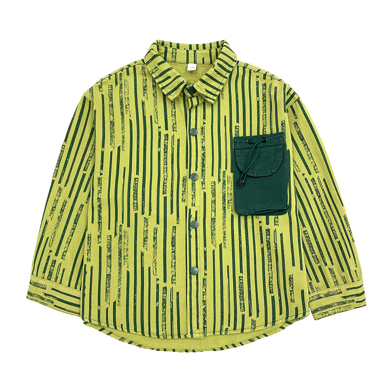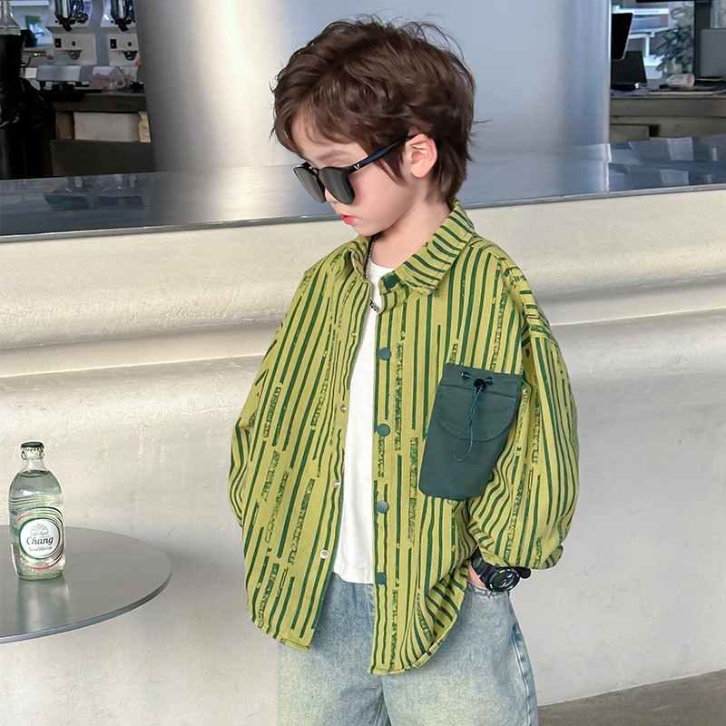 | nameOriginal | Children's New Fashion Brand Denim Shirt 2024 Spring Korean-style Green Striped Old Boy's Solid Color Pocket Children's Wear |