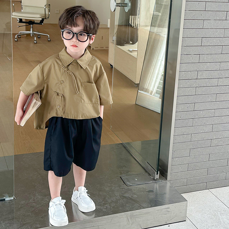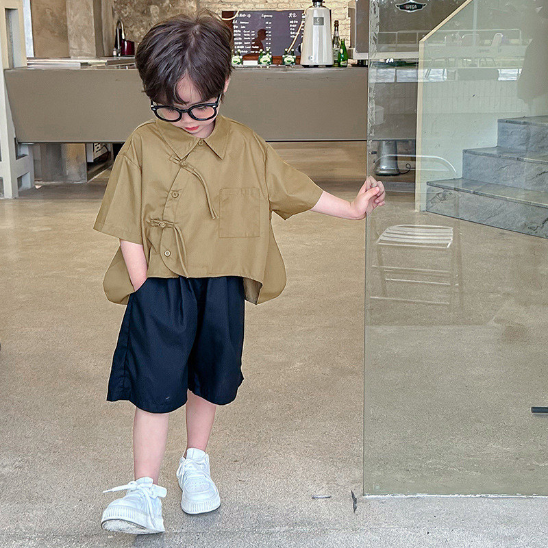 Children's New Hanfu 2024 Summer Style Boys' National Fashion New Chinese Style White Solid Color Tang Suit Tassel Plate Buckle Slant Placket