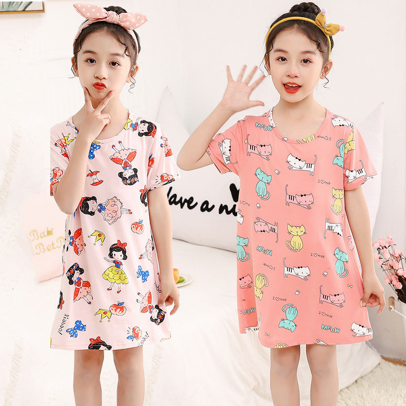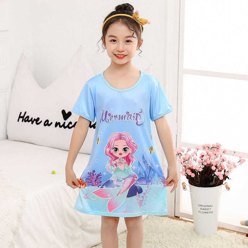 | nameOriginal | Children's Nightdress Short-sleeved Summer Girl's Printed Ice Silk Thin Princess Dress Girl's Pajamas Home Clothes Dress for Women |