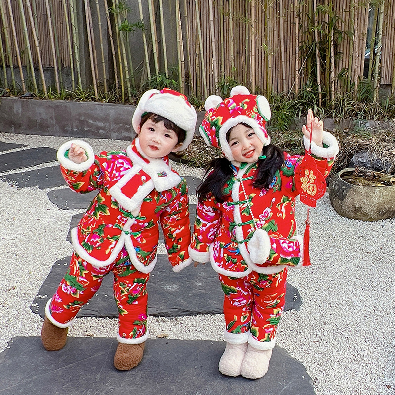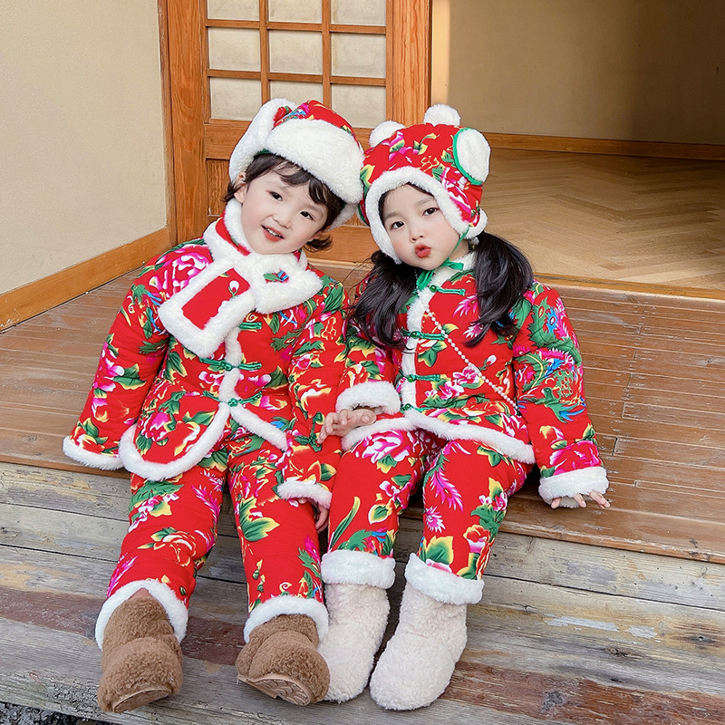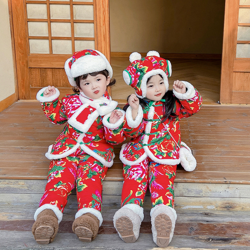 | nameOriginal | Children's Northeast large floral cotton-padded jacket winter boys and girls suit New Year greeting clothes thickened Baby New Year Tang suit cotton-padded coat |