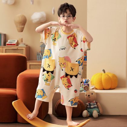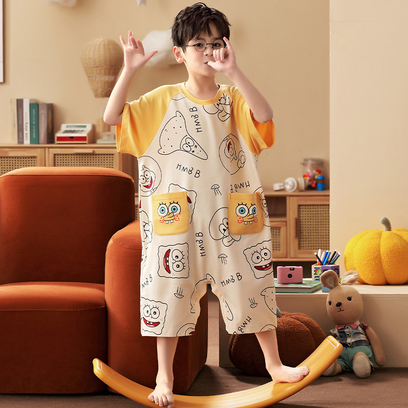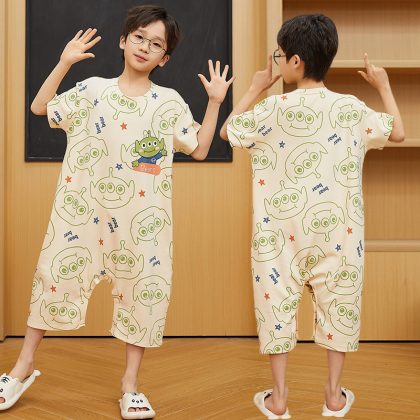 | nameOriginal | Children's One-piece Pajamas Boy's Summer Pure Cotton Thin Air Conditioner Kick-proof One-piece Clothes Boy's Baby's Short-sleeved Home Clothes |