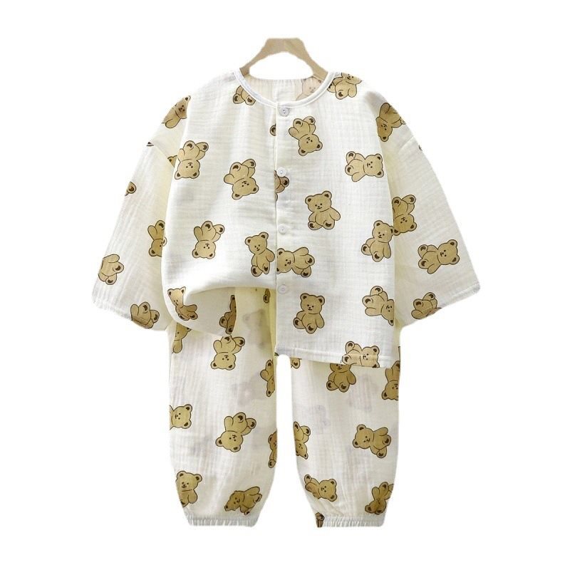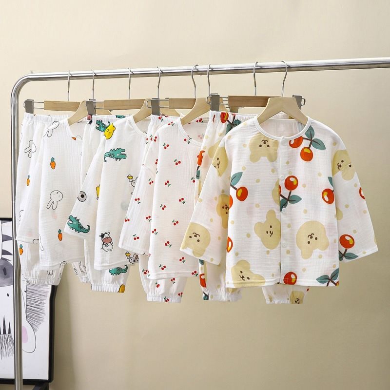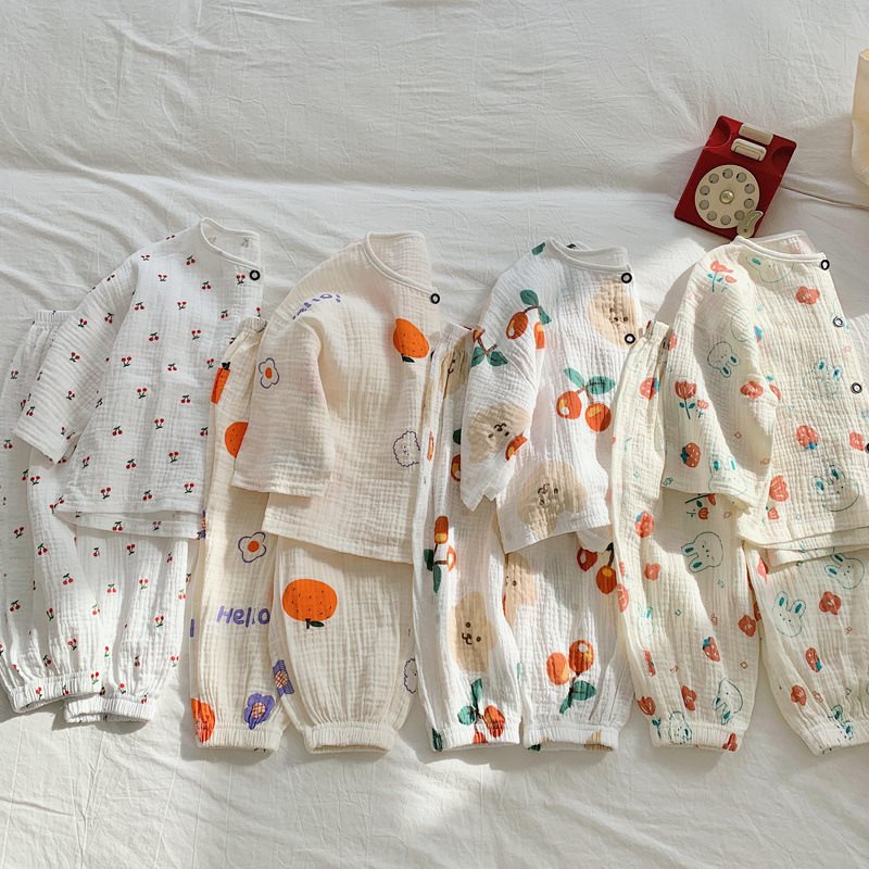 Children's Pajamas Children's Thin Double-Layer Cotton Gauze Cropped Sleeve Cotton Home Clothes Men's and Women's Baby Cropped Pants suit