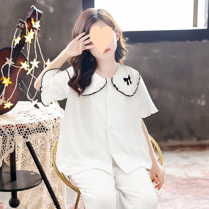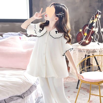 | nameOriginal | Children's Pajamas Girls' Summer Thin Cotton Big Children's Air-conditioning Clothes Home Clothes suit Short-sleeved New Princess Cute |