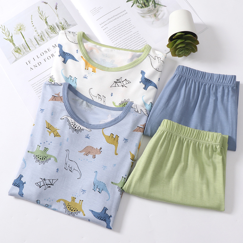 Children’s Pajamas Suit Youke Silk New Summer Thin Boys’ Middle and Big Children’s Ice Silk Home Suit Short Sleeve Shorts