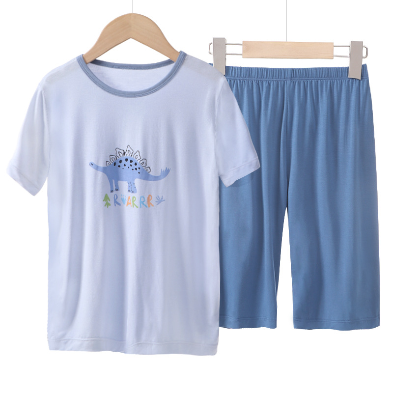 Children's Pajamas Suit Youke Silk New Summer Thin Boys' Middle and Big Children's Ice Silk Home Suit Short Sleeve Shorts