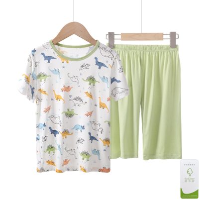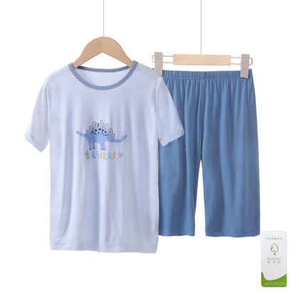 Children’s Pajamas Suit Youke Silk New Summer Thin Boys’ Middle and Big Children’s Ice Silk Home Suit Short Sleeve Shorts