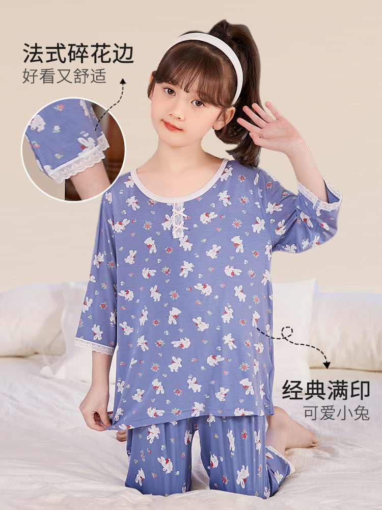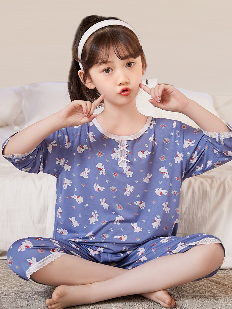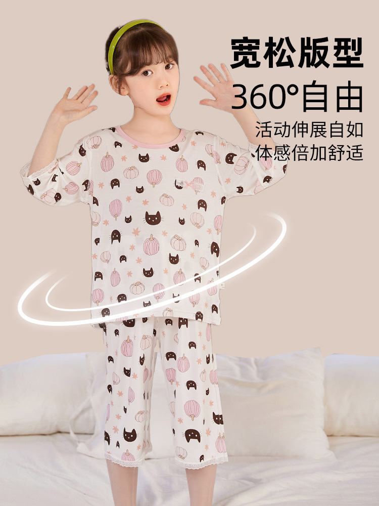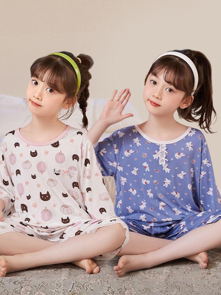 | nameOriginal | Children's Pajamas Summer 2024 New Broken Lace Girls Cat Printed Air-conditioning Suit Two-piece Thin Fashionable Wholesale |