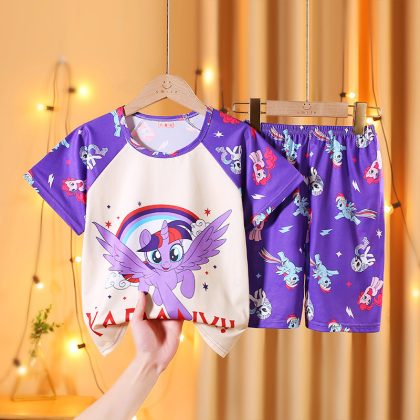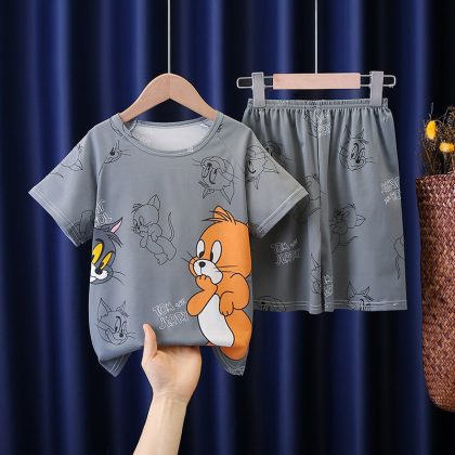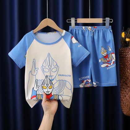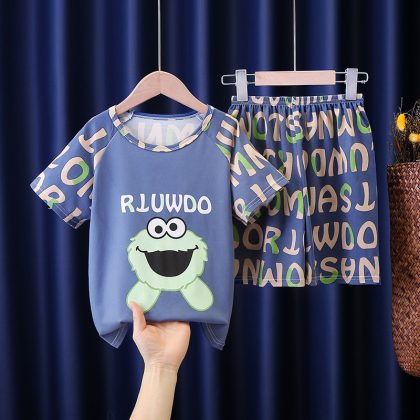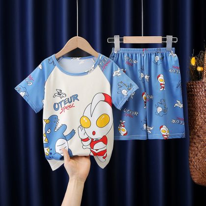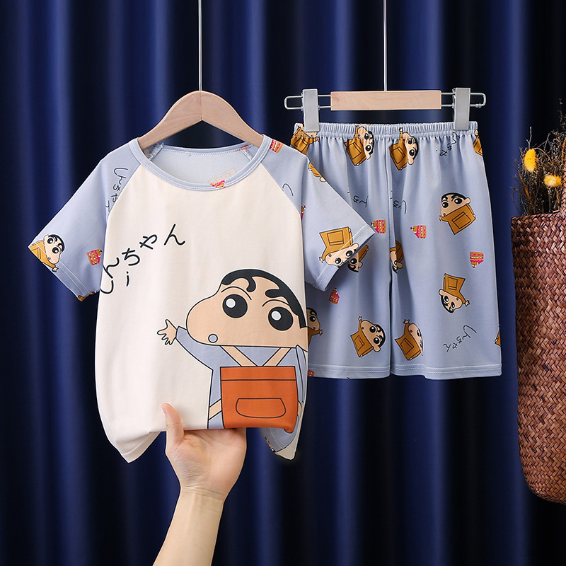 | nameOriginal | Children's pajamas summer short-sleeved Korean style suit boys and girls homewear medium and big children summer baby air conditioning clothes thin |