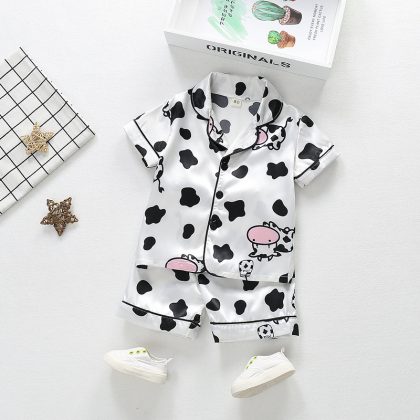 Children’s Pajamas Summer Thin 2024 Boys’ and Boys’ Home Clothes Silk-like Children’s Air-conditioning Clothes Short-sleeved Shorts suit