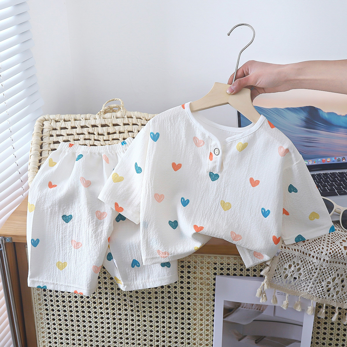 | nameOriginal | Children's pajamas summer thin boys' three-quarter sleeve cropped pants pure cotton suit Girls' Home wear children's summer wear |