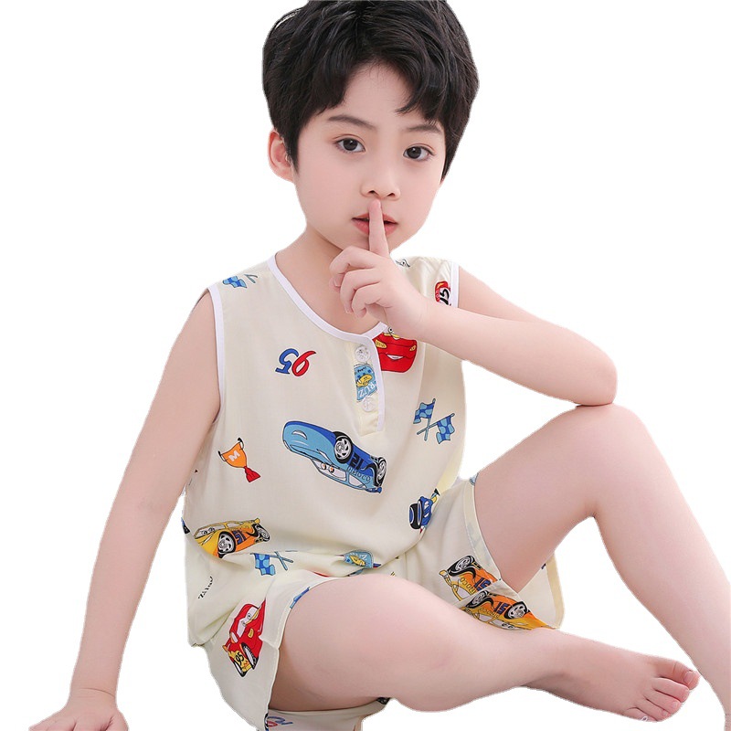 | nameOriginal | Children's Pajamas Vest Shorts Set Summer Thin Faux Cotton Silk Children's Sleeveless Cotton Fabric Home Clothes for Boys and Girls |