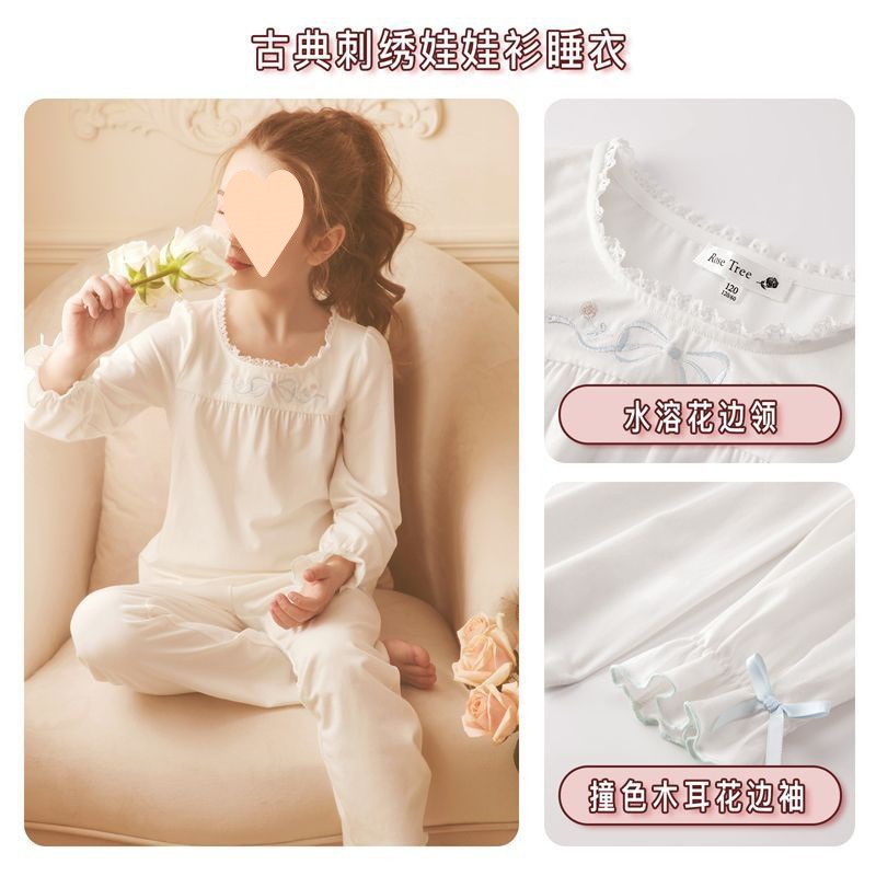 Children's Pajamas Women's Spring and Autumn Cotton Princess Style Long Sleeve Thin Girls' Home Clothes Cute Baby Long Sleeve suit