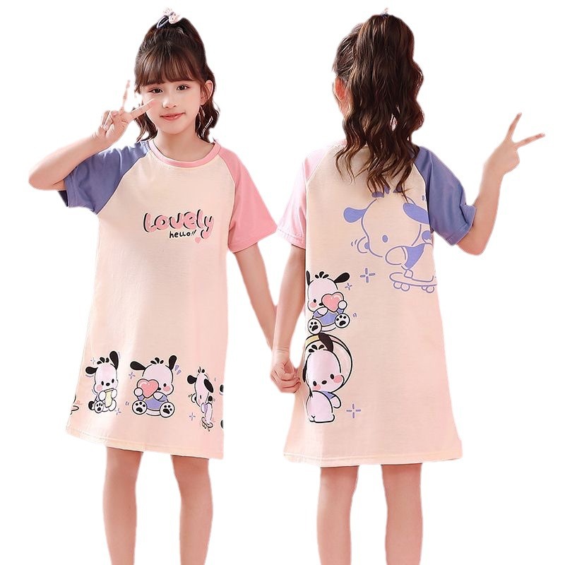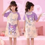 | nameOriginal | Children's Pajamas Women's Spring and Autumn Summer Short-sleeved Nightgown Girl's Princess Kuromi Middle and Big Girl's Home Air-conditioning Clothes |