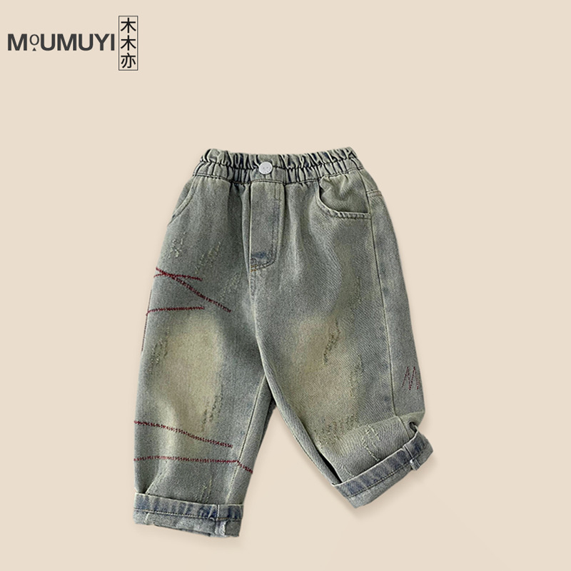 | nameOriginal | Children's Pants Boys Red Line Jeans Spring and Autumn 2024 Autumn New Children's Fashion Loose Casual Trousers |