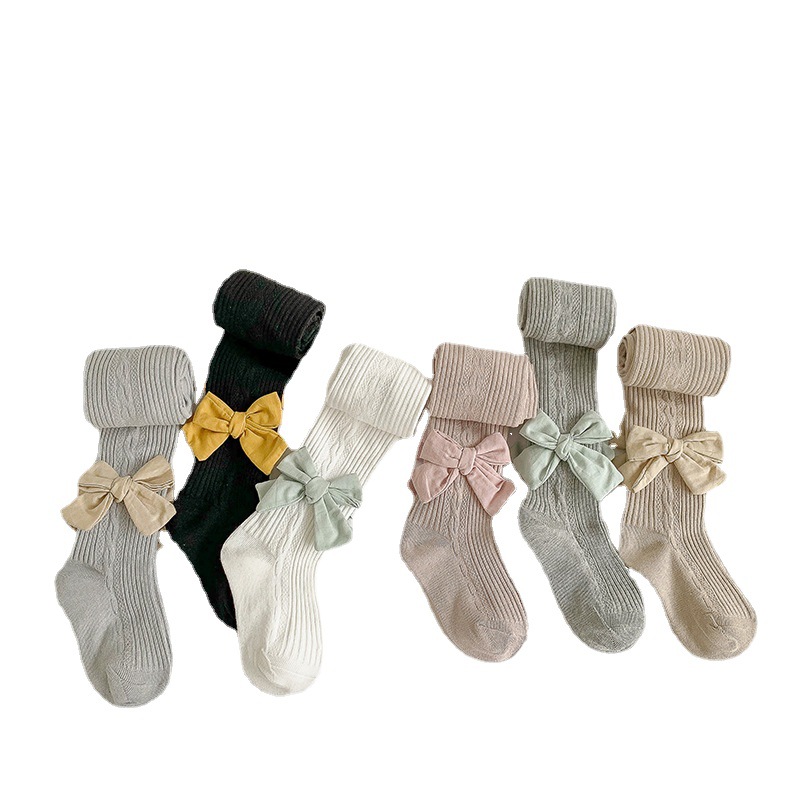 | nameOriginal | Children's pantyhose baby spring and autumn baby bottoming socks solid color bow jumpsuit girls leggings wholesale |