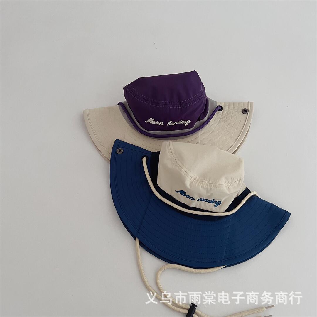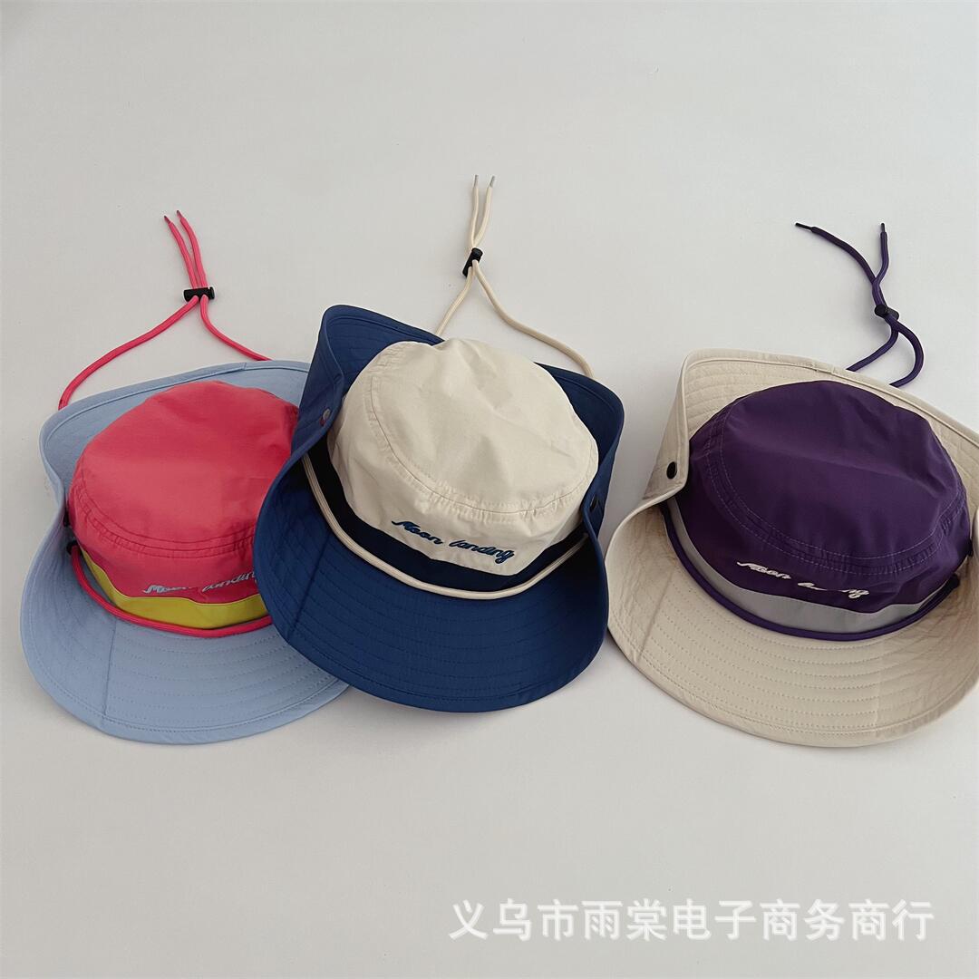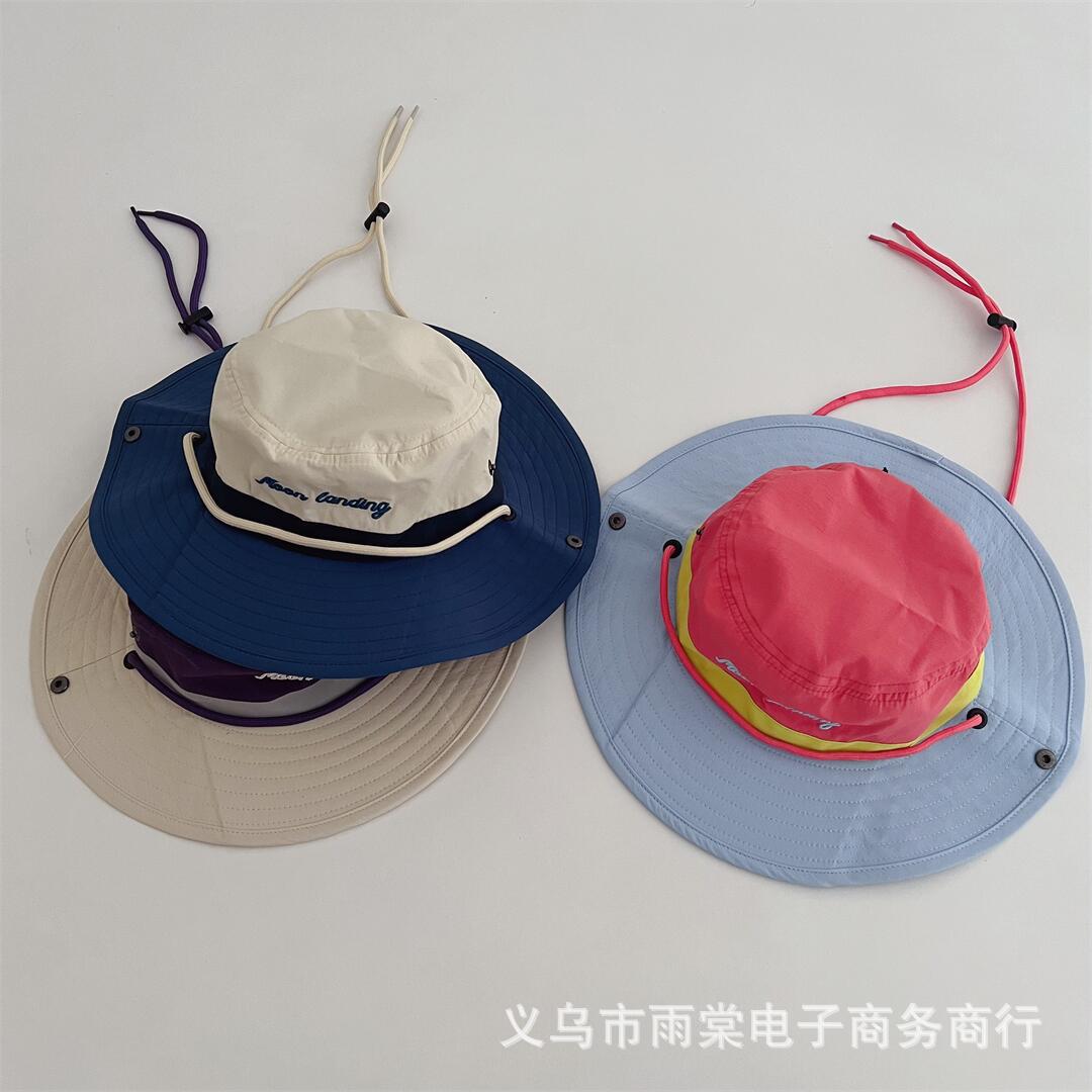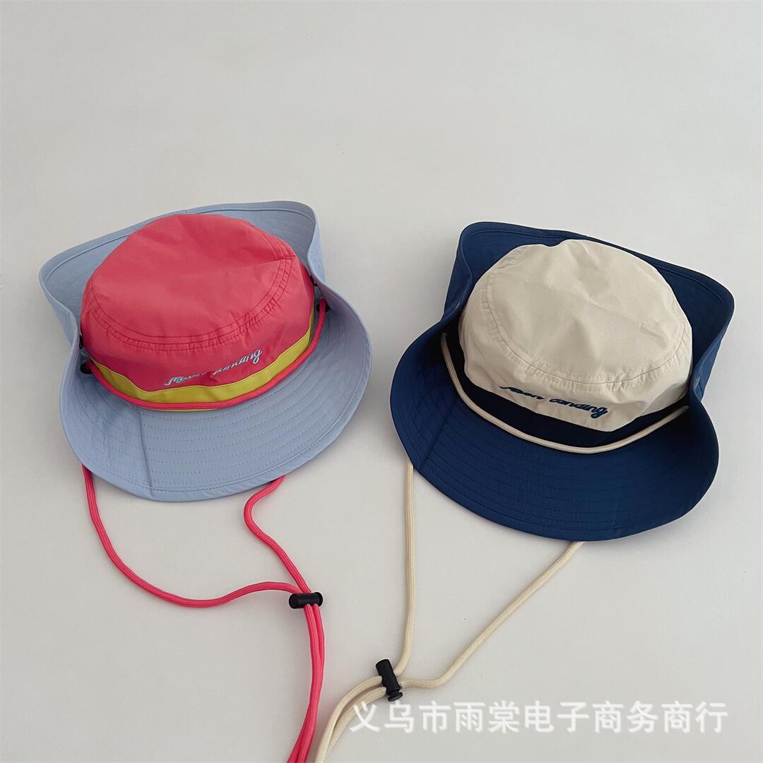 Children's Parent-Child Fisherman Hat Personalized Color Matching Letter Embroidered Sunshade Sunscreen Hat Boys and Girls Baby All-Match Basin Hat