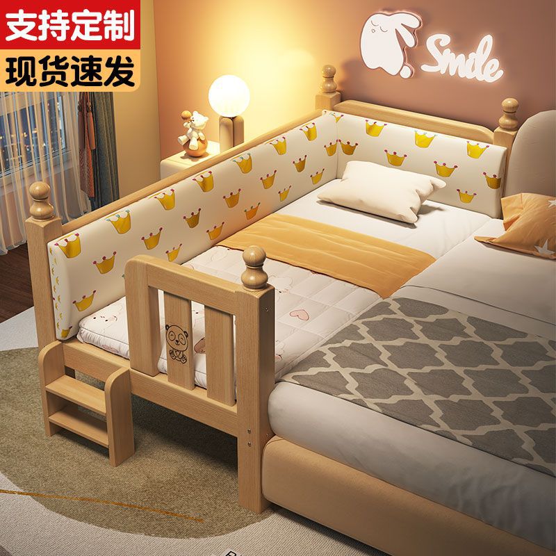 | nameOriginal | Children's patchwork bed solid wood with guardrail boys and girls crib widened big bed bedside baby small bed |