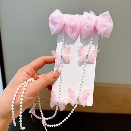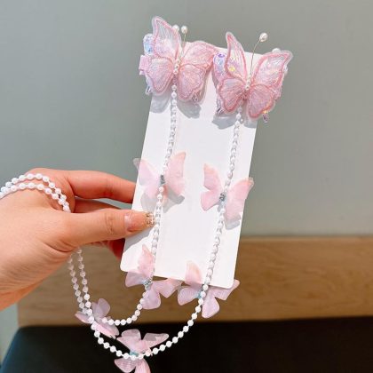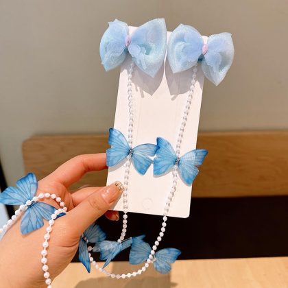 | nameOriginal | Children's Pearl Tassel Hairpin Butterfly Wings Hair Accessories Girls Colorful Flower Hair Chain Pontail Hairpin Headwear |