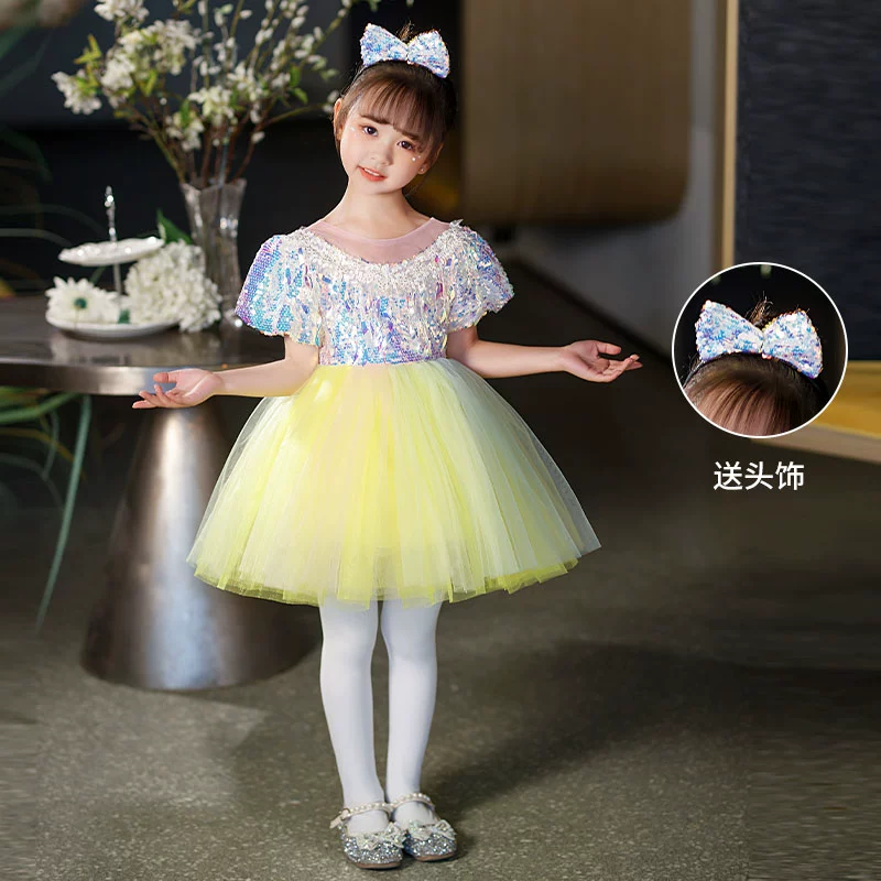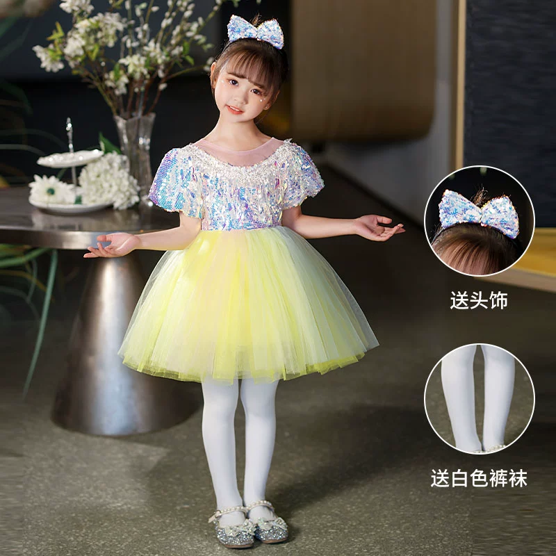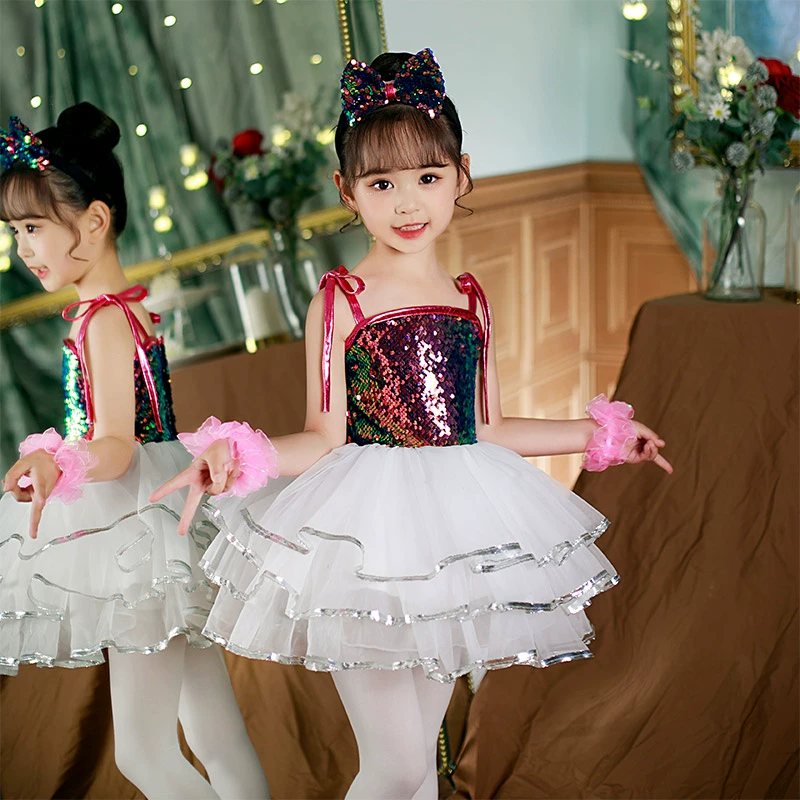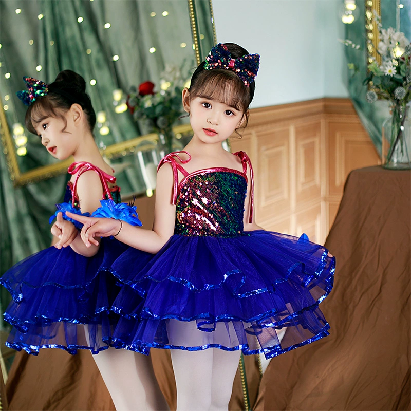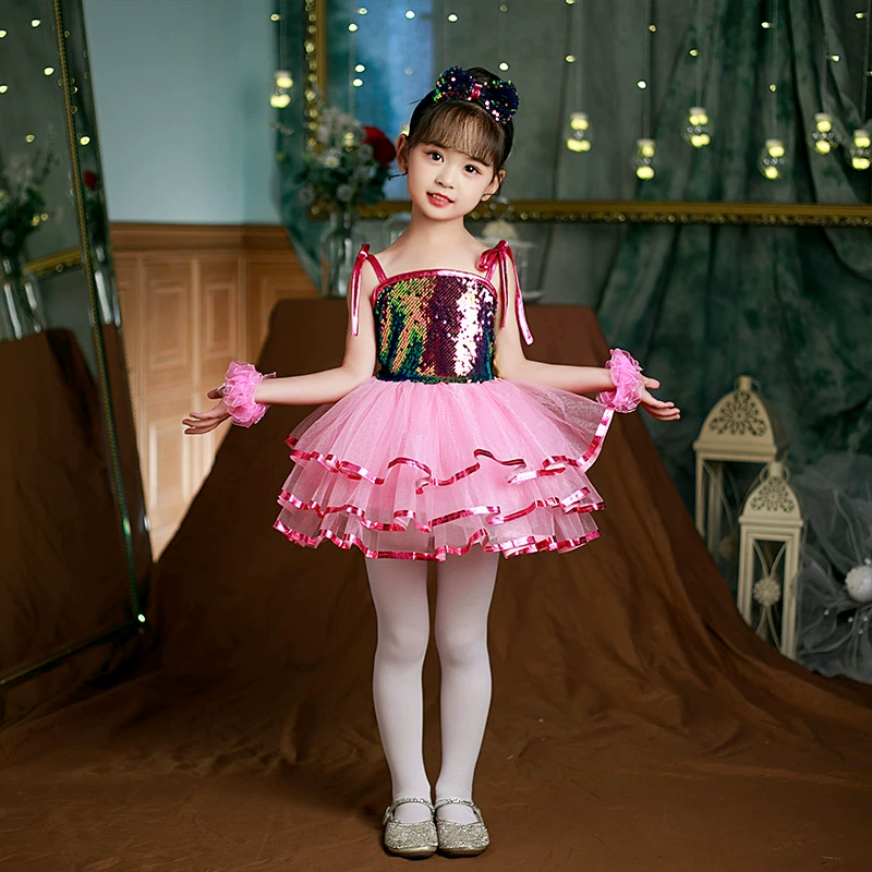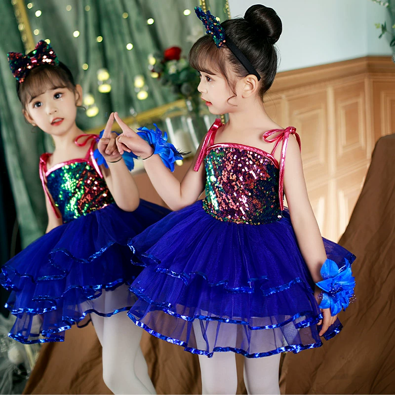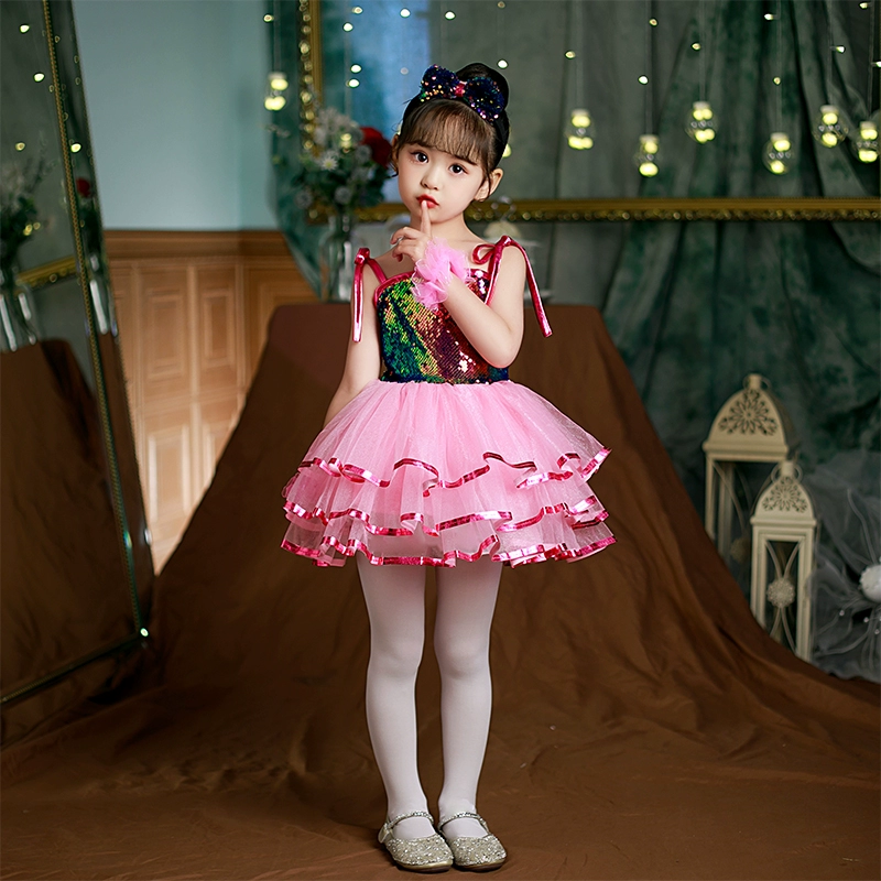 Children’s performance costumes, puffy gauze skirts, girls sequin performance costumes, kindergarten dance suspender princess dresses, clothes