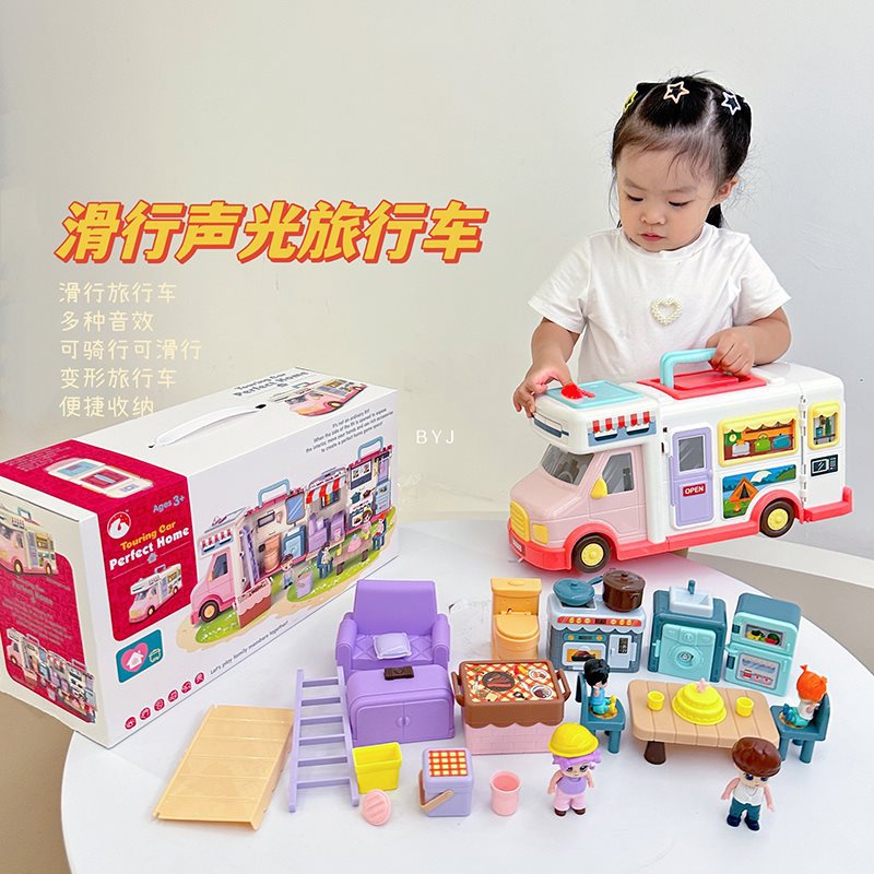 | nameOriginal | Children's Play Girl Doll House Cart Toy 3 Year Old Boy Deformation Music RV Sliding Birthday Gift |