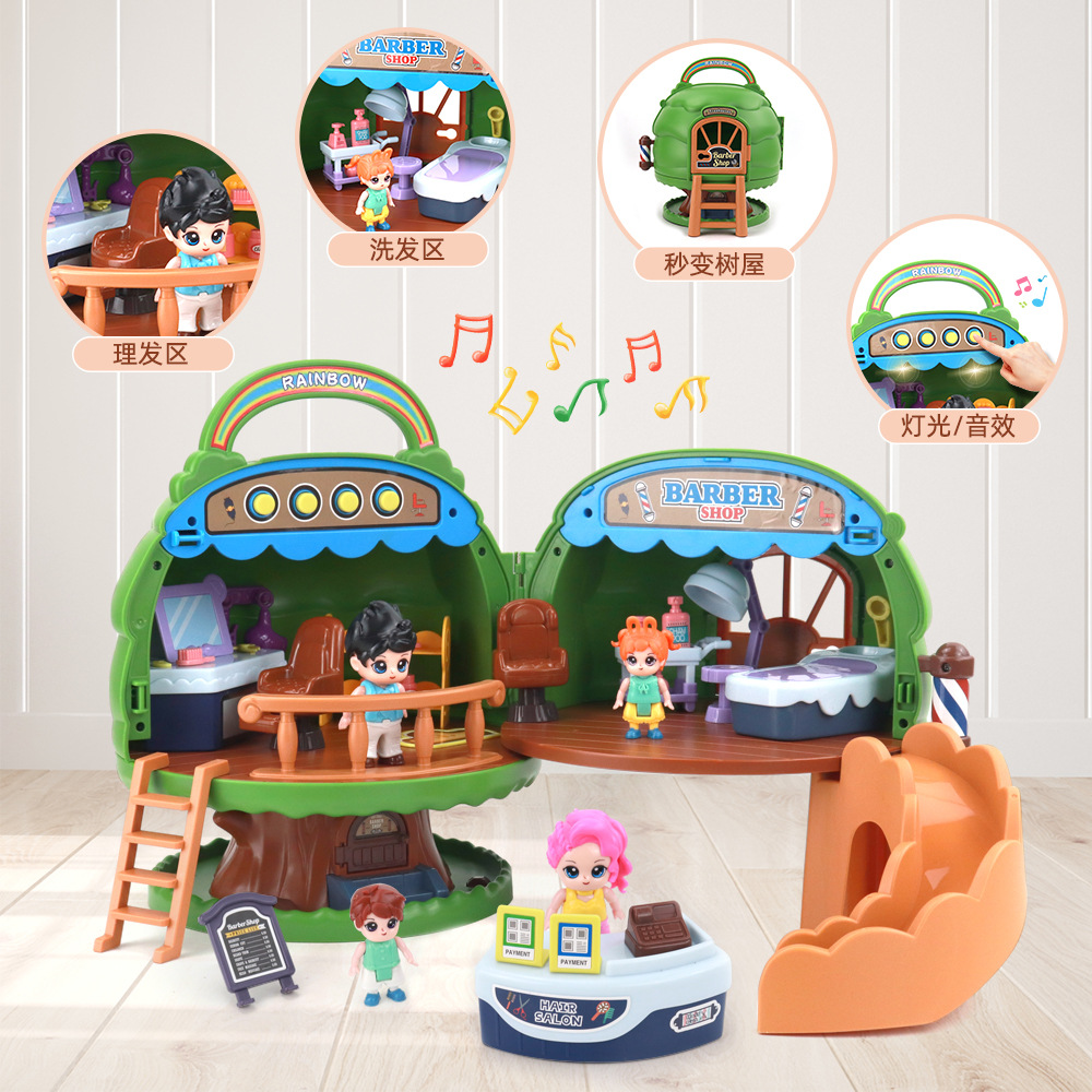 | nameOriginal | Children's Play House Deformation Storage Toy Set Sound and Light Hairdressing Salon Barber Shop Portable Tree House Big Doll House |