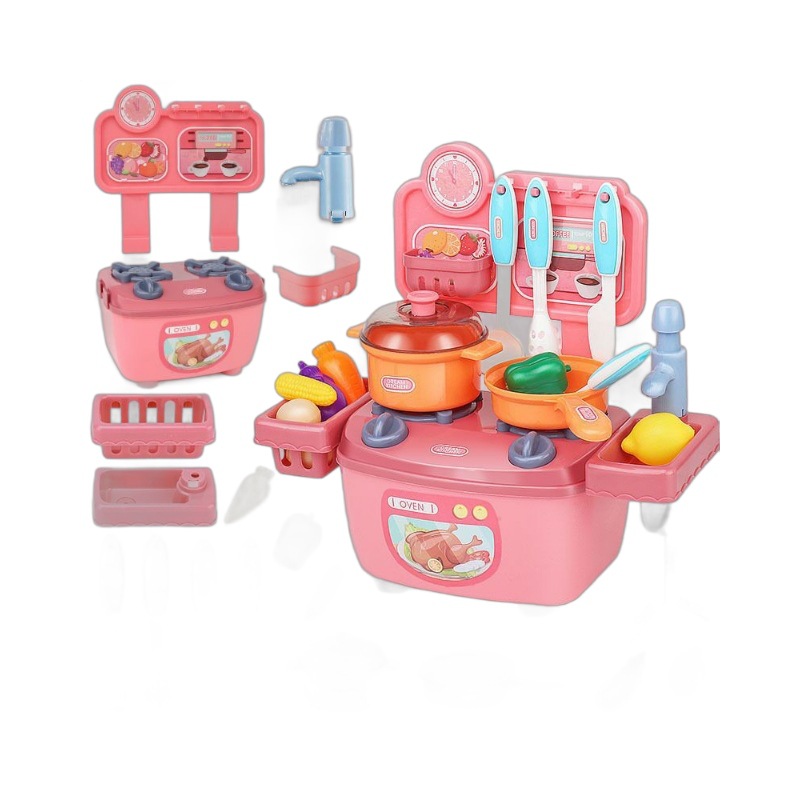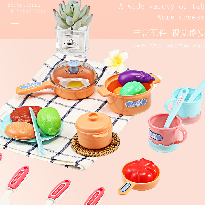 Children’s play house kitchen toys suit boys and girls simulation cooking kitchenware tableware water sound and light dining table cross-border
