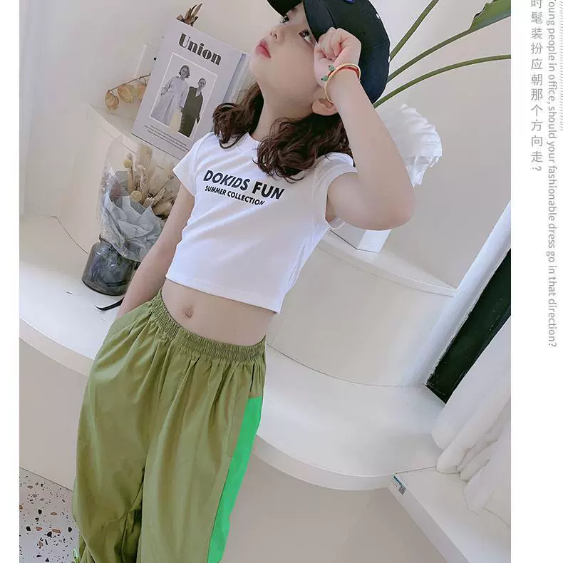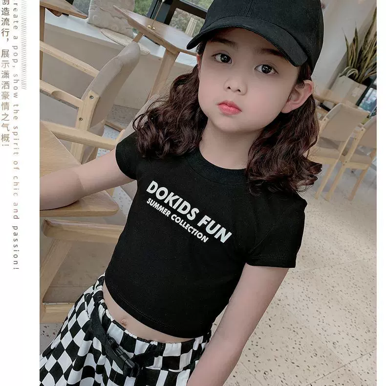 | nameOriginal | Children's printed spring and summer fashionable navel-baring tops |