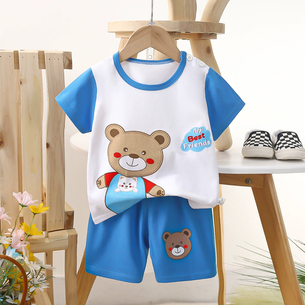 | nameOriginal | Children's pure cotton short-sleeved suit summer boys and girls T-shirt shorts two-piece set baby clothes baby cartoon children's clothing |