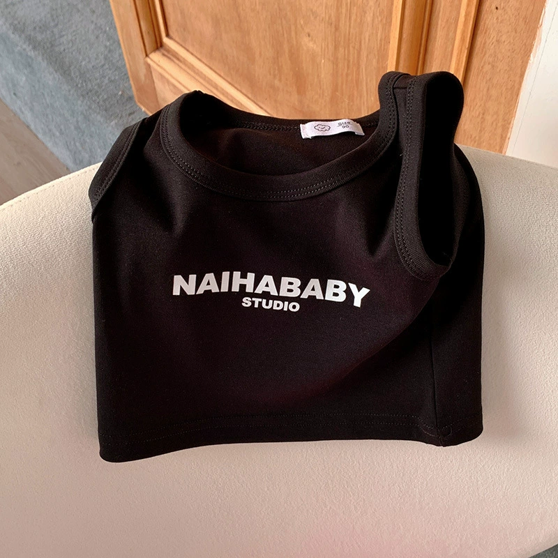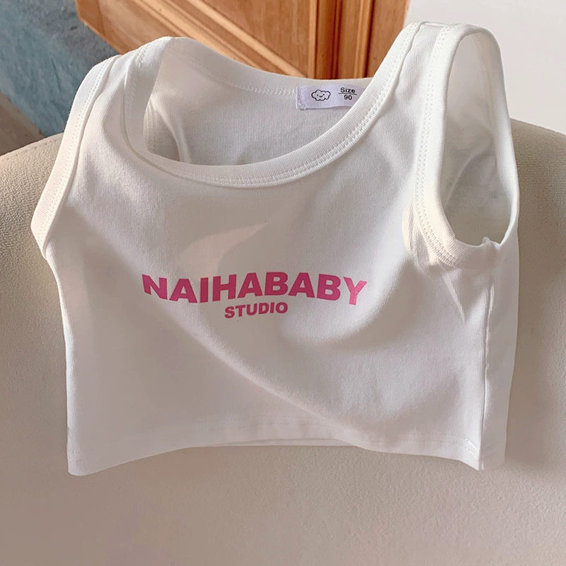 | nameOriginal | Children's pure cotton short sports vest 2024 summer male and female baby Korean style letter solid color round neck sleeveless top |