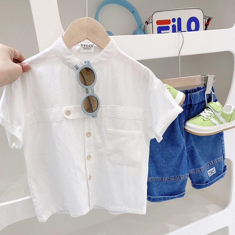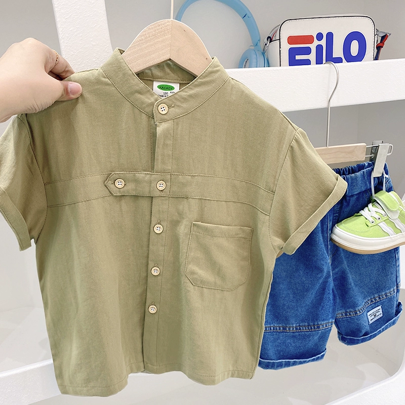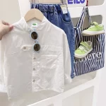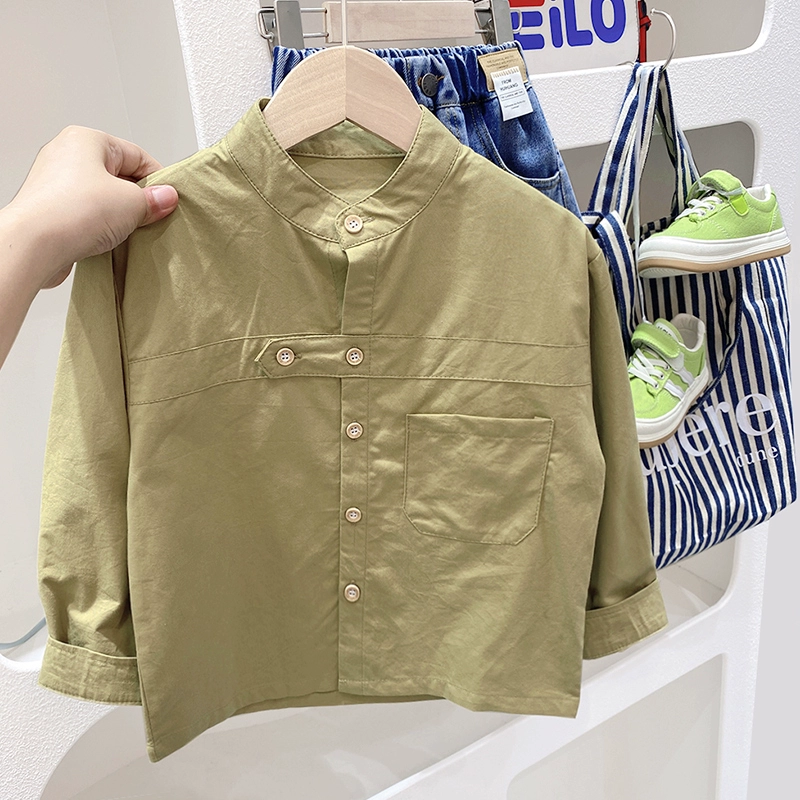 | nameOriginal | Children's pure cotton stand collar western style spring and autumn long-sleeved shirt |