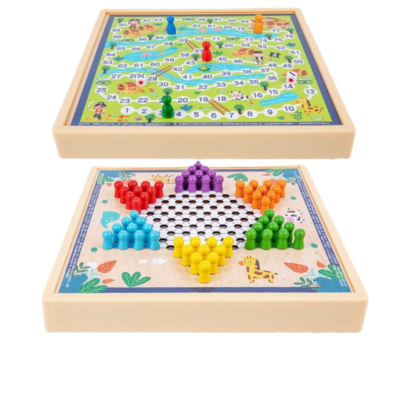 Children's Puzzle Checkers Flying Wooden Multifunctional Game Wuzi Elephant Fighting Beast Toy for Primary School Students