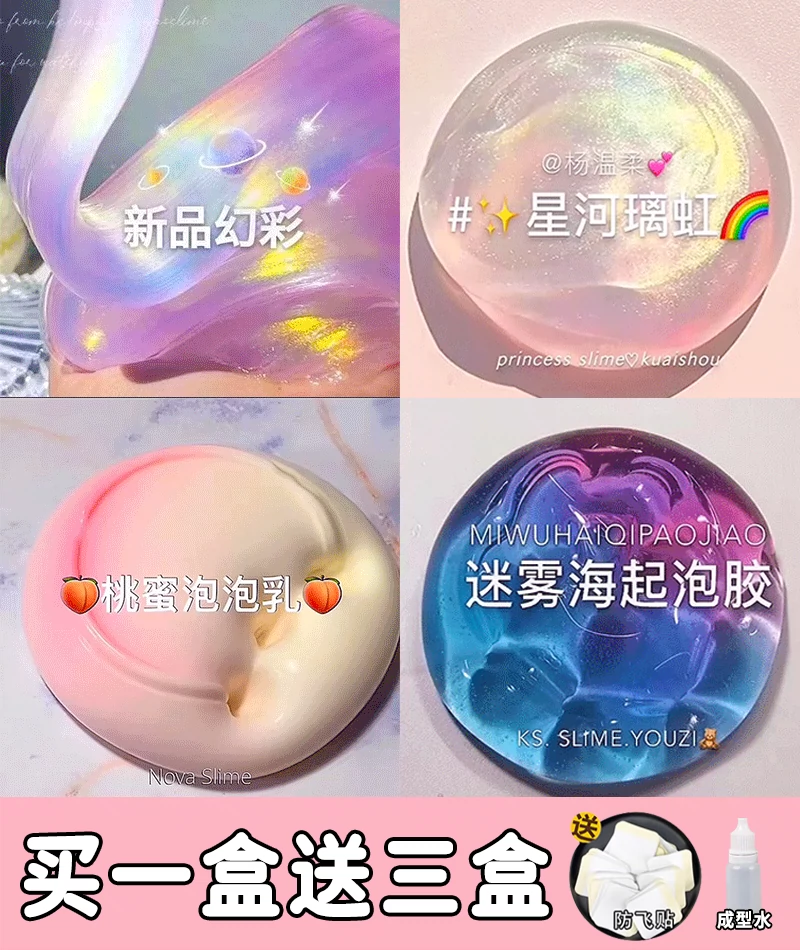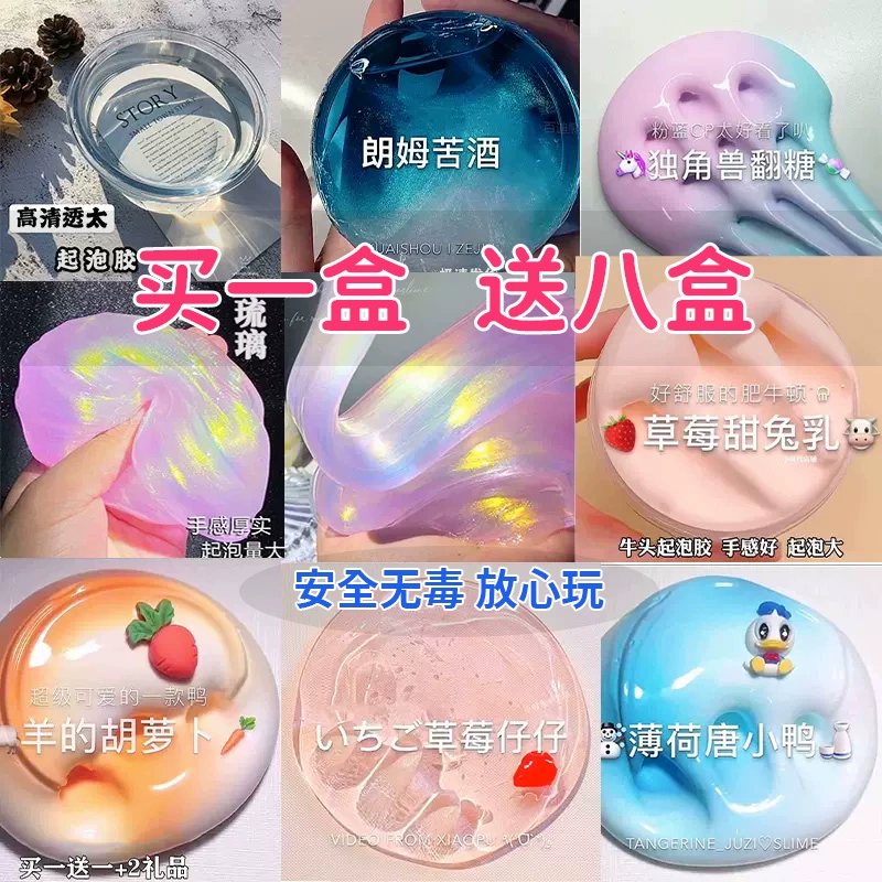 | nameOriginal | Children's safe and non-toxic Internet celebrity toys foaming glue crystal mud color mud genuine slime set box clay fake water |