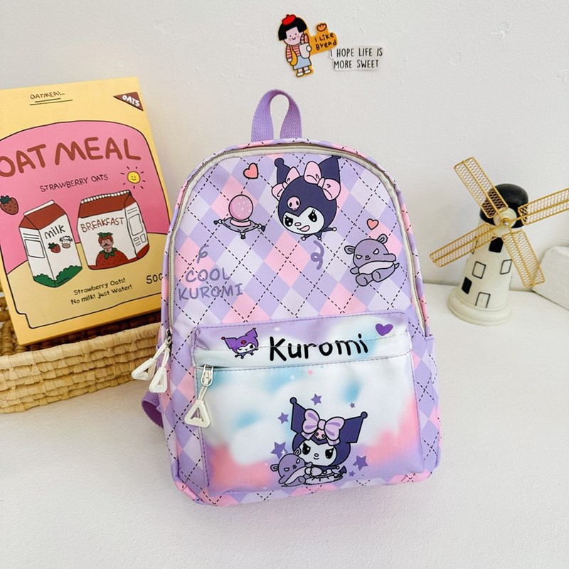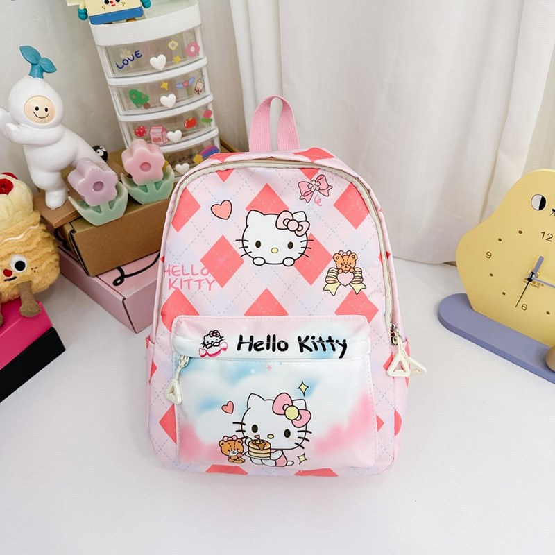 Children's Sanrio New Chessboard Color Contrast Creative Backpack Lightweight Large Capacity Cartoon Cute Kindergarten Schoolbag