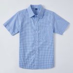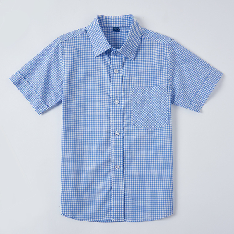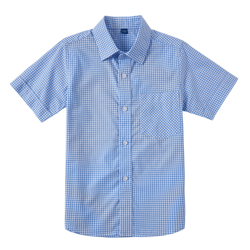 Children's school uniform blue shirt boys' cotton Mediterranean short-sleeved shirt summer children's light blue plaid shirt