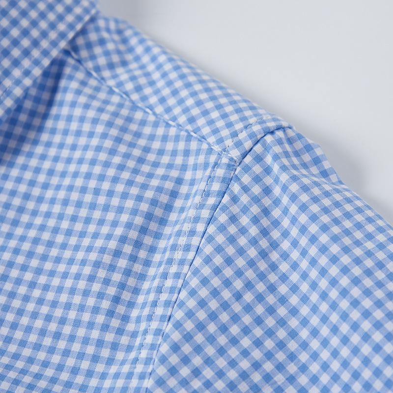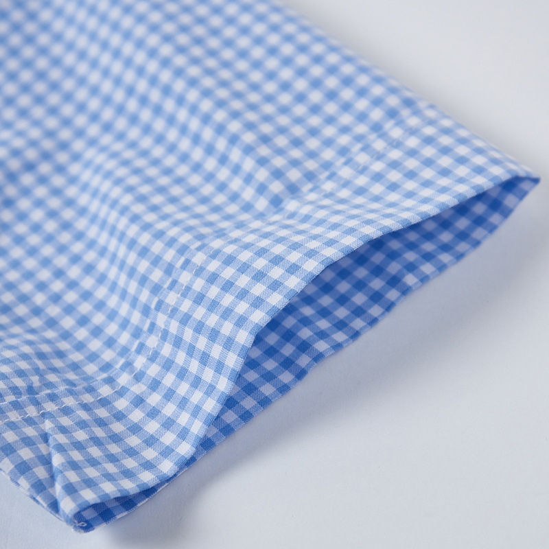 Children’s school uniform blue shirt boys’ cotton Mediterranean short-sleeved shirt summer children’s light blue plaid shirt
