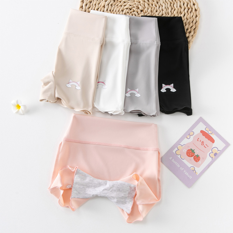 Children's Shark Pants Three-point Thin Summer Cool Comfortable Leggings Breathable Ice Silk Crotch High Waist Girls' Safety Pants