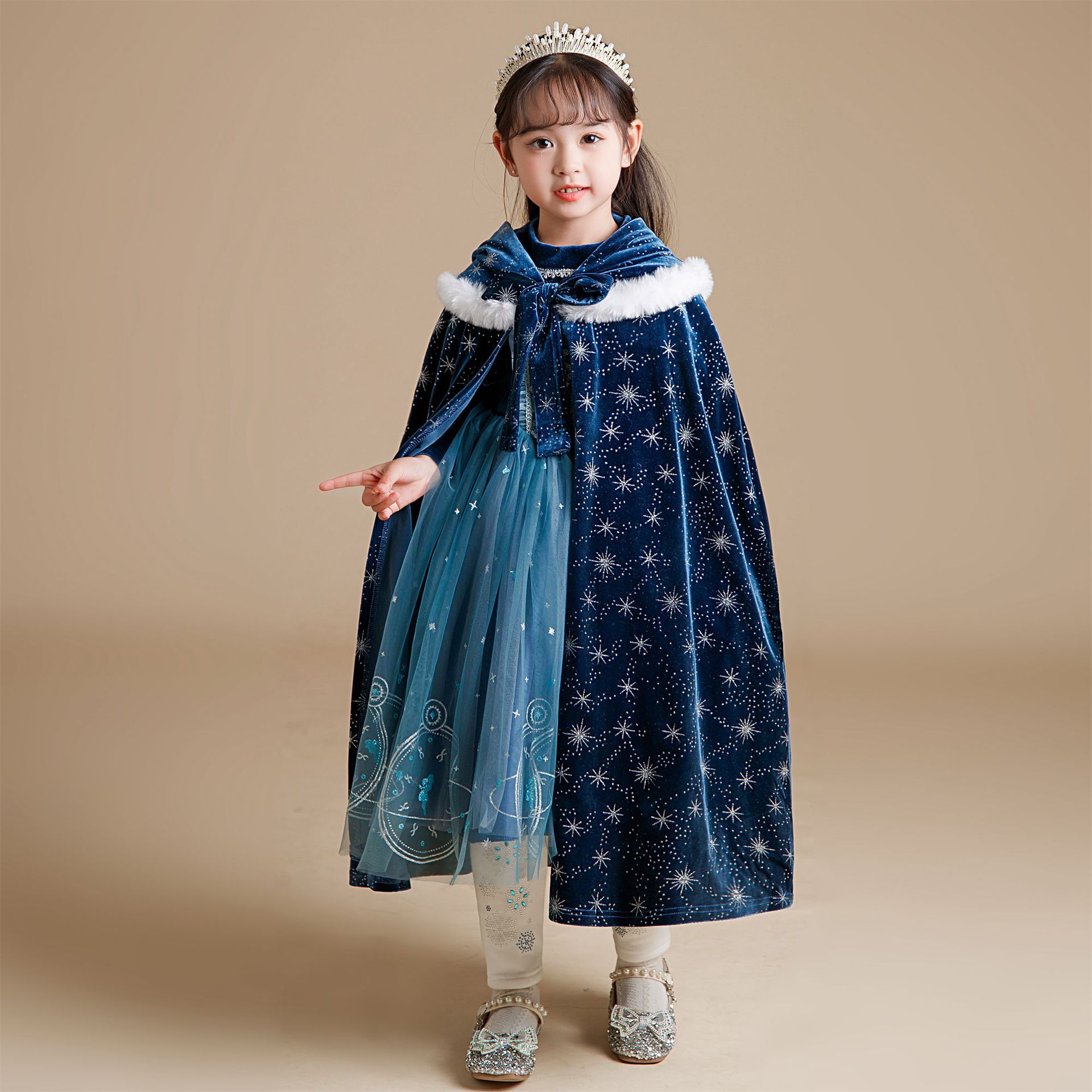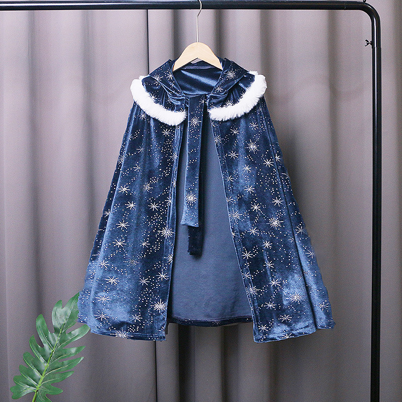 | nameOriginal | Children's shawl outer wear Aisha Princess Korean velvet printed cloak fashion windproof little girl shawl outer wear coat |