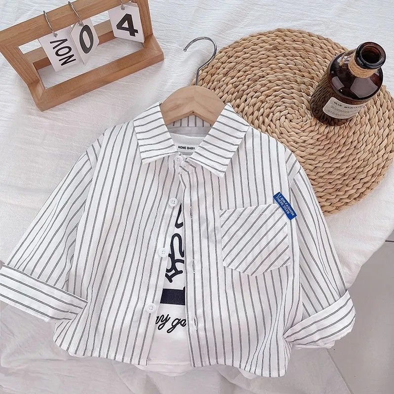 | nameOriginal | Children's Shirt 2024 Spring and Summer New Arrival Boys' Vertical Stripe Sun-protective Clothing Korean Long-sleeved Student Shirt Western Style Top |
