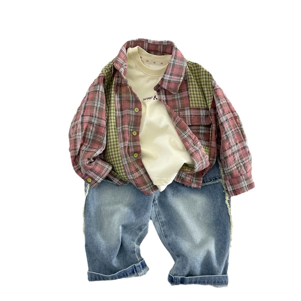 | nameOriginal | Children's shirt Pu Shuai suit spring 2024 spring new plaid shirt children's casual long sleeve three-piece suit fashion |