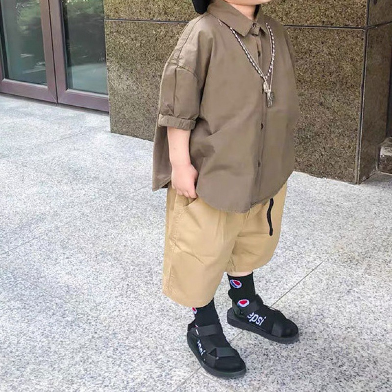 Children’s Shirt Short-sleeved 2024 Summer New Korean Style Loose Distinctive Bat-sleeved Fashionable Stylish Boys and Girls Shirt