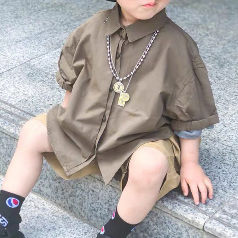Children's Shirt Short-sleeved 2024 Summer New Korean Style Loose Distinctive Bat-sleeved Fashionable Stylish Boys and Girls Shirt