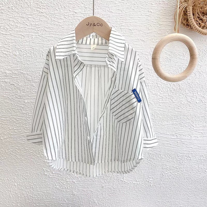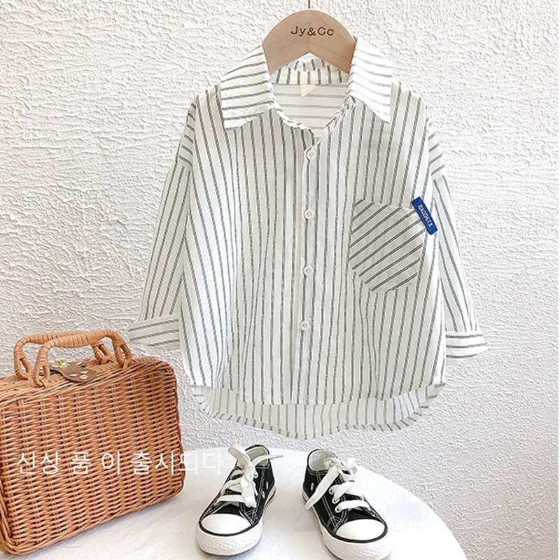 | nameOriginal | Children's shirt spring and summer boys' vertical striped baby shirt Korean style medium and big children's bottoming shirt western style |