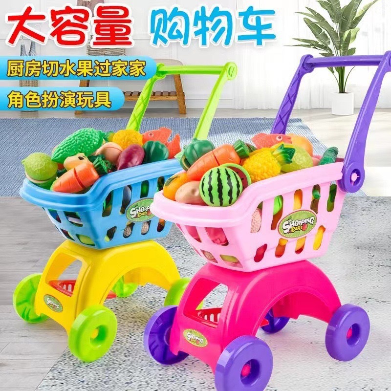 Children's Shopping Cart Play Home Toys Simulation Baby Trolley Che Che Le Fruit Toys Wholesale Cross-border