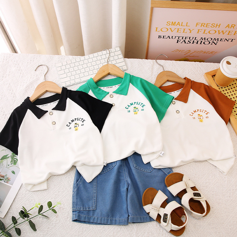 | nameOriginal | Children's Short-sleeved Polo Shirt 2024 Summer Western Style Top for Boys and Girls Children's Lassel Base Shirt Baby T-shirt |
