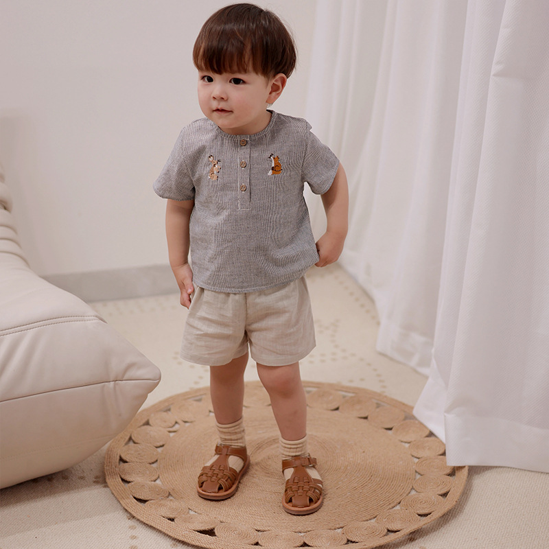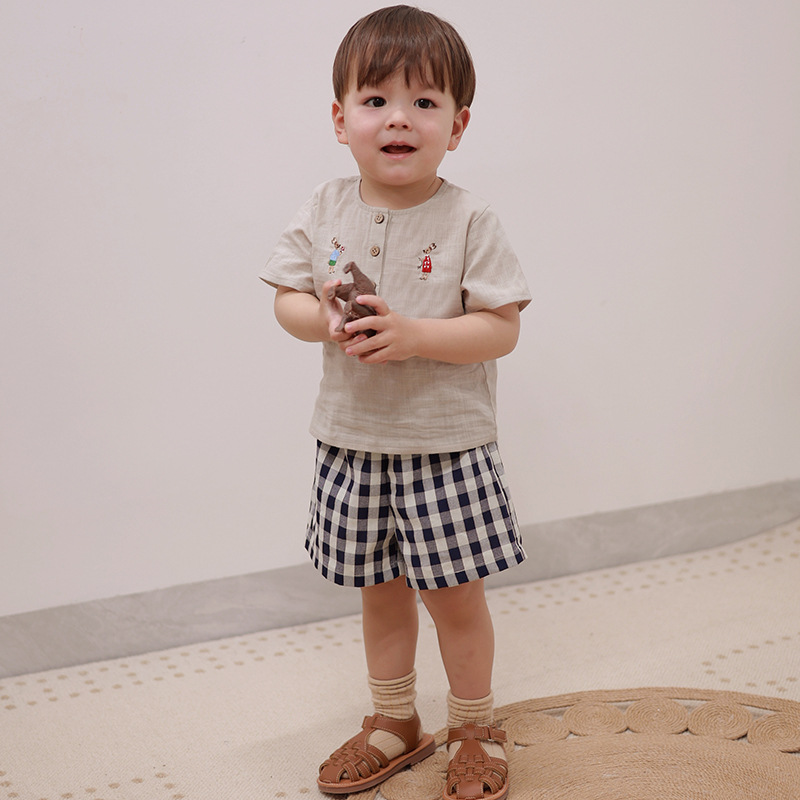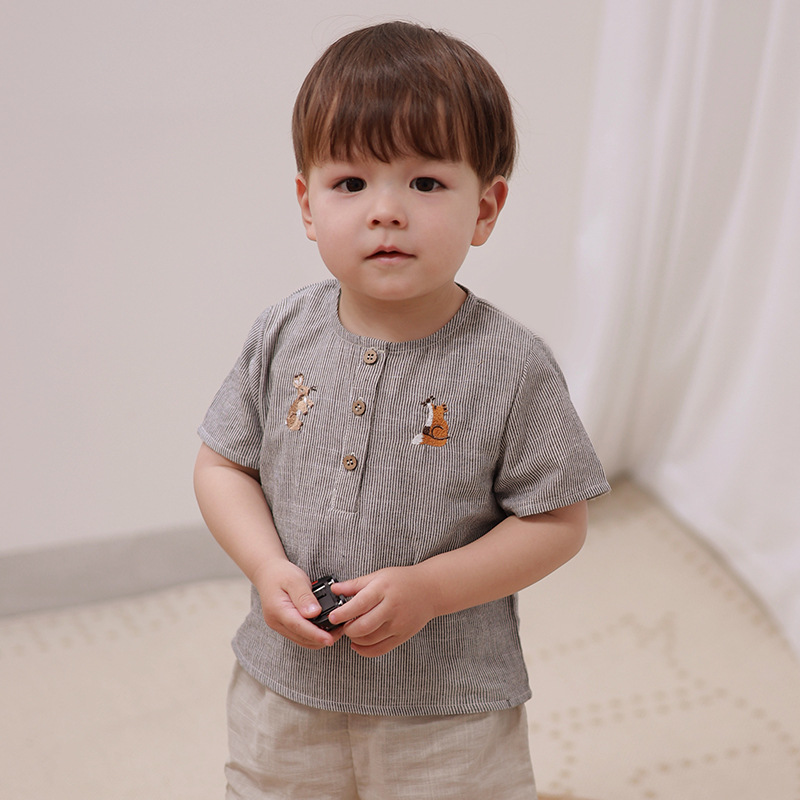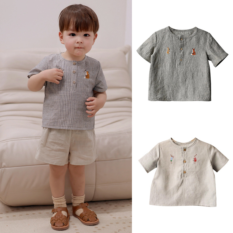 | nameOriginal | Children's short-sleeved shirt handmade embroidery 2024 Nordic style summer soft skin-friendly men's and women's cotton top |